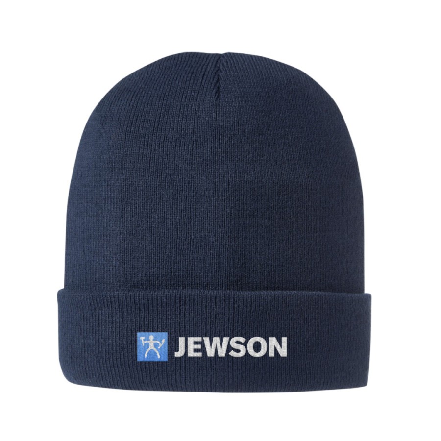 Navy Blue rolled down 100 % acrylic beanie. One size. Embroidered on the front with Jewson logo.