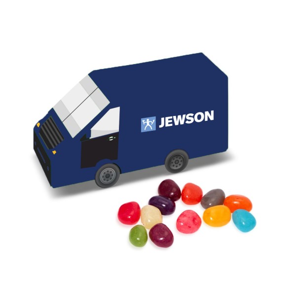 Eco Van Box with Jelly Bean Factory beans. This box is made from sustainably sourced packaging, and can be composted/recycled. Made in the UK.