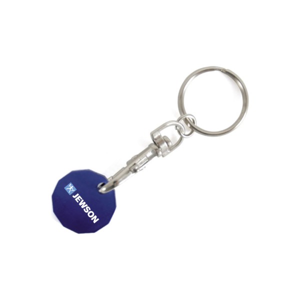 12 sides metal trolley coin keyring with detachable carabiner clip and supplied with a split ring attachment.